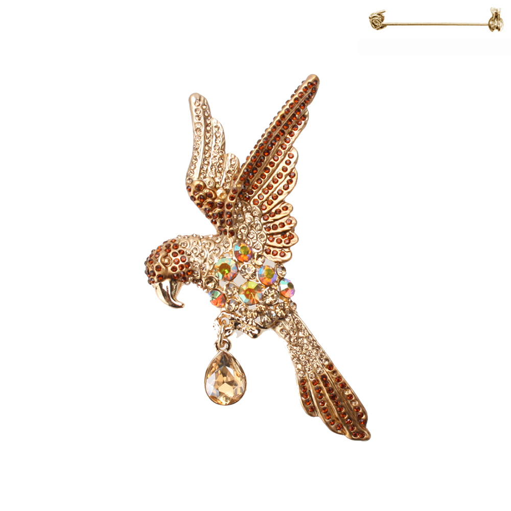 Stone Encrusted Eagle with Dangly Teardrop Gem Brooch Pin
