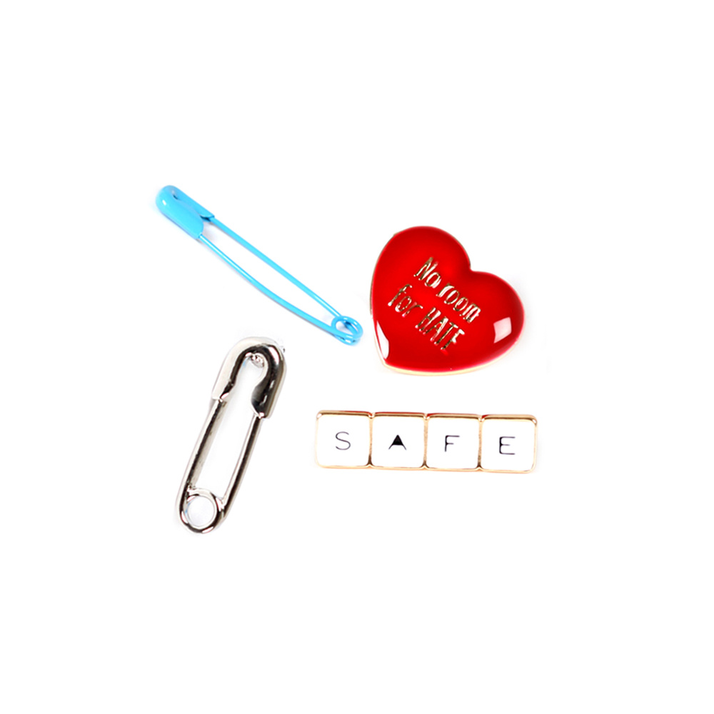 4 Pc Safety Pin And Heart Pin Set