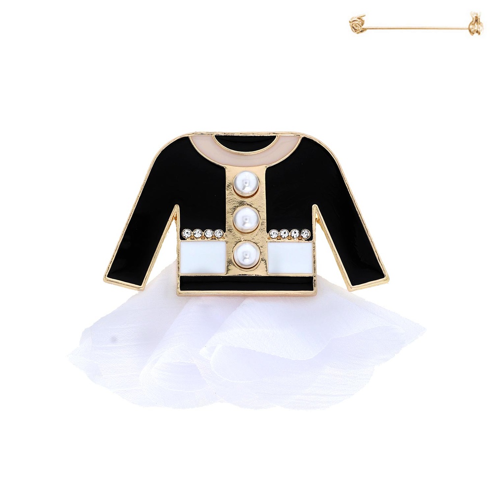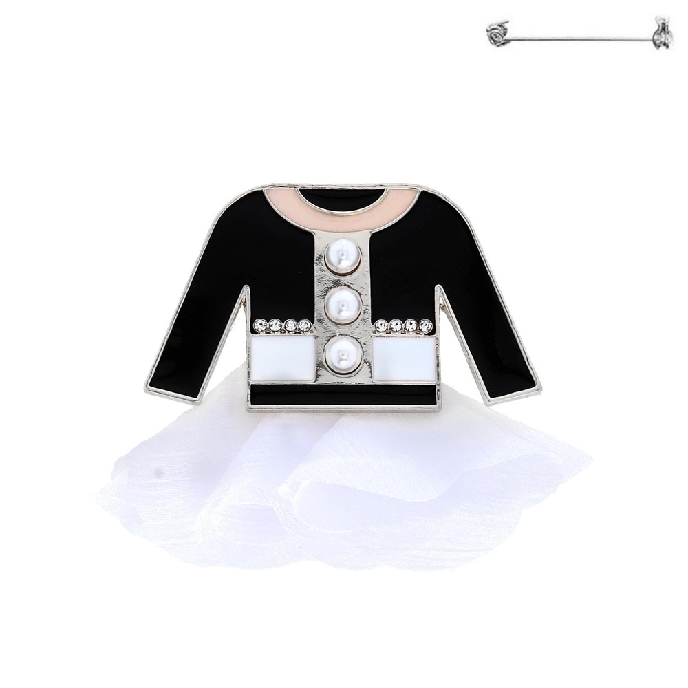 FASHIONISTA ENAMEL COATED CRYSTAL RHINESTONE PAVE PEARL EMBELLISHED TULLE DRESS DECORATIVE BROOCH