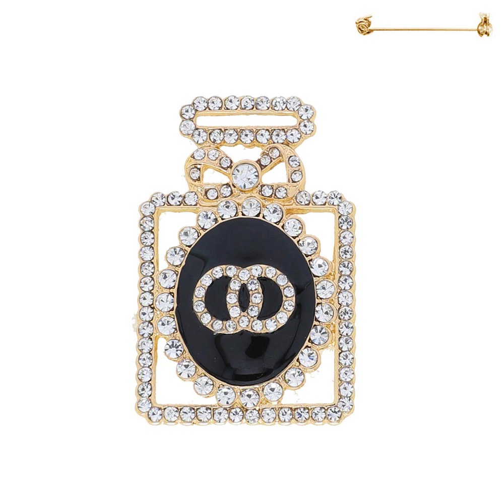 FASHIONISTA CRYSTAL RHINESTONE PAVE ENAMEL COATED CIRCLE LINK PERFUME BOTTLE DECORATIVE BROOCH PIN