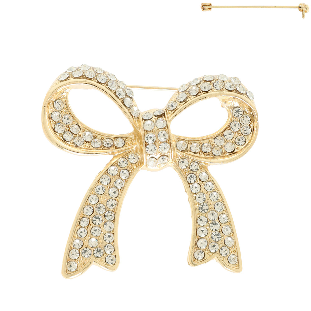 RHINESTONE PAVE SHORT TAIL BOW KNOT BROOCH PIN