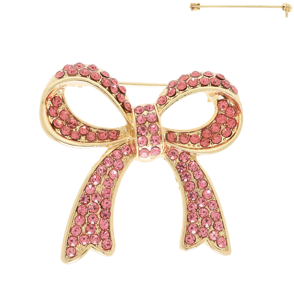 RHINESTONE PAVE SHORT TAIL BOW KNOT BROOCH PIN