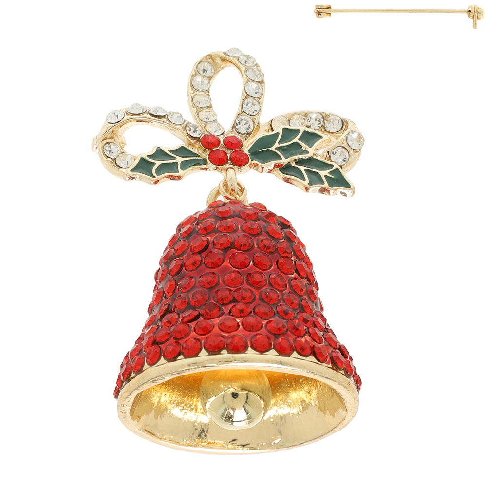 MISTLETOE CHRISTMAS BELL CRYSTAL RHINESTONE PAVE BROOCH PIN