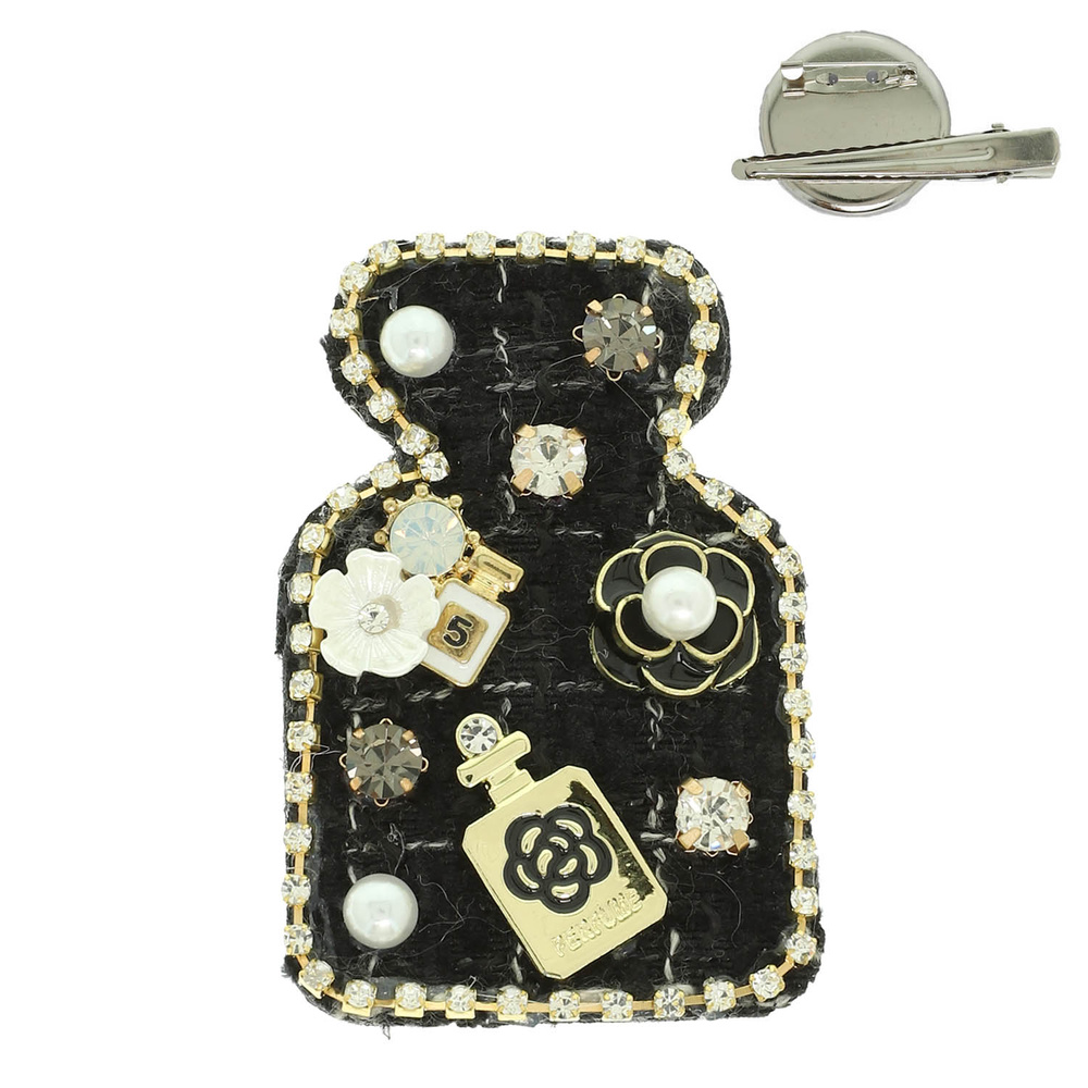 PERFUME SHAPE BROOCH PIN WITH PEARL AND CRYSTAL ACCENTS