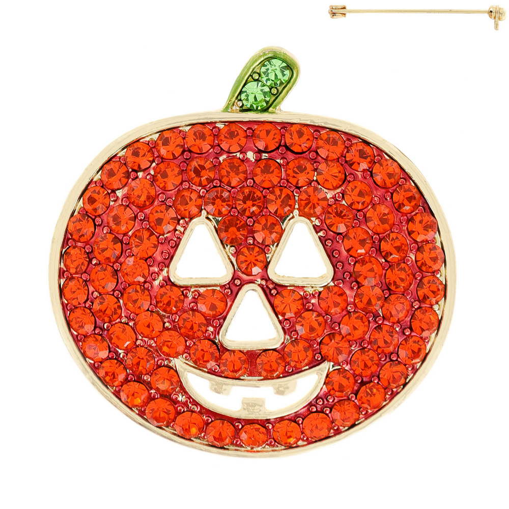 Halloween Rhinestone Jack O Lantern Pumpkin Brooch Pin