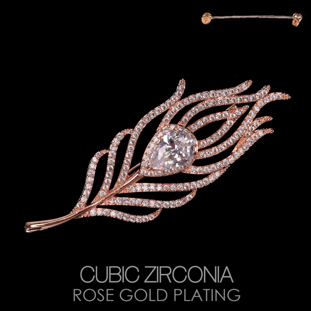PEACOCK FEATHER CZ WH GOLD BROOCH