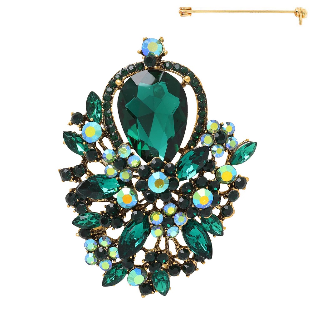 Vintage Crystal Gemstone Petal Cluster Brooch Pin