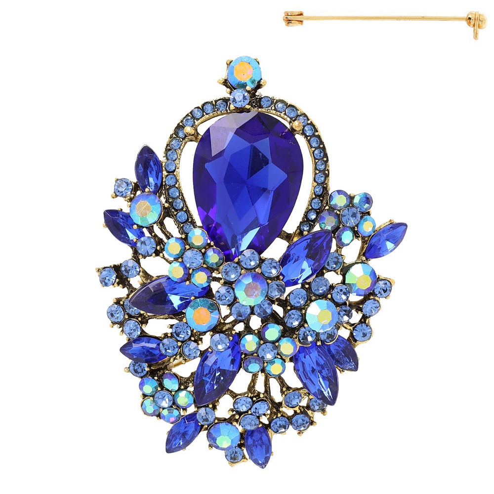 Vintage Crystal Gemstone Petal Cluster Brooch Pin