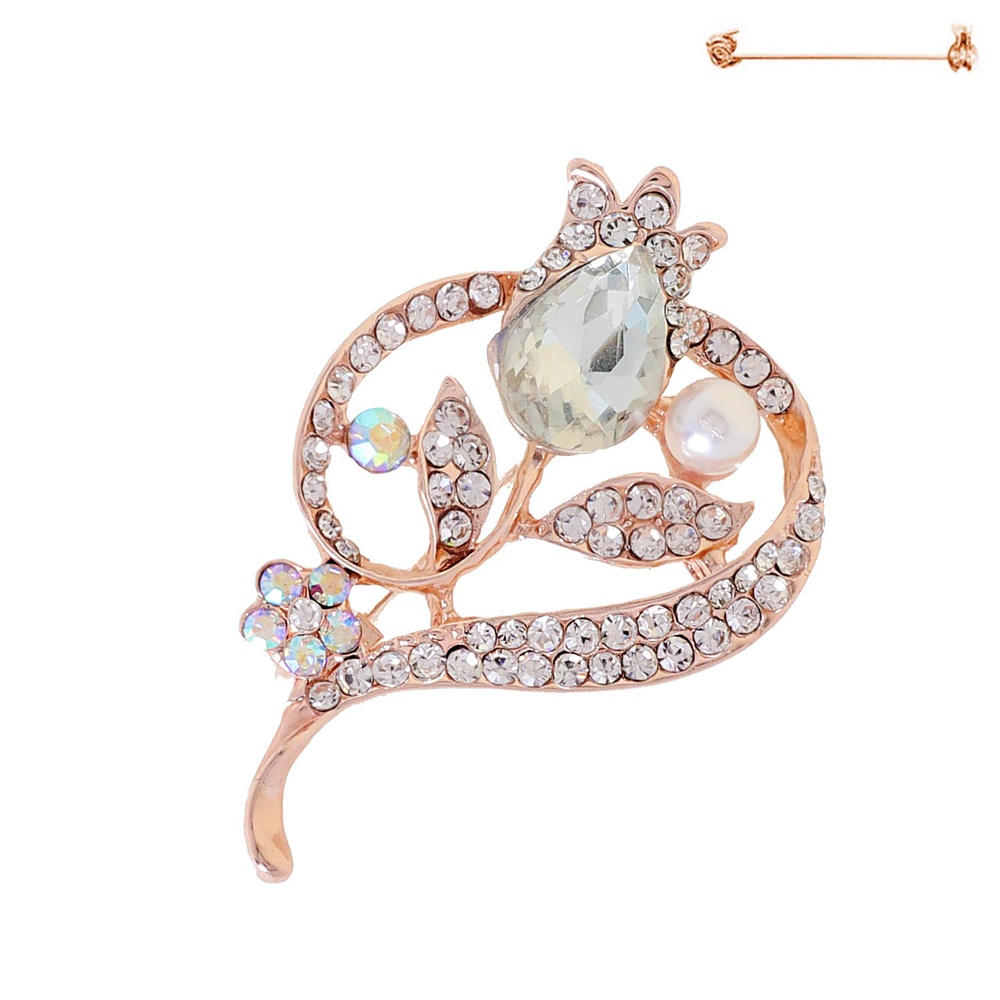 Crystal Rhinestone Tulip Floral Brooch Pin