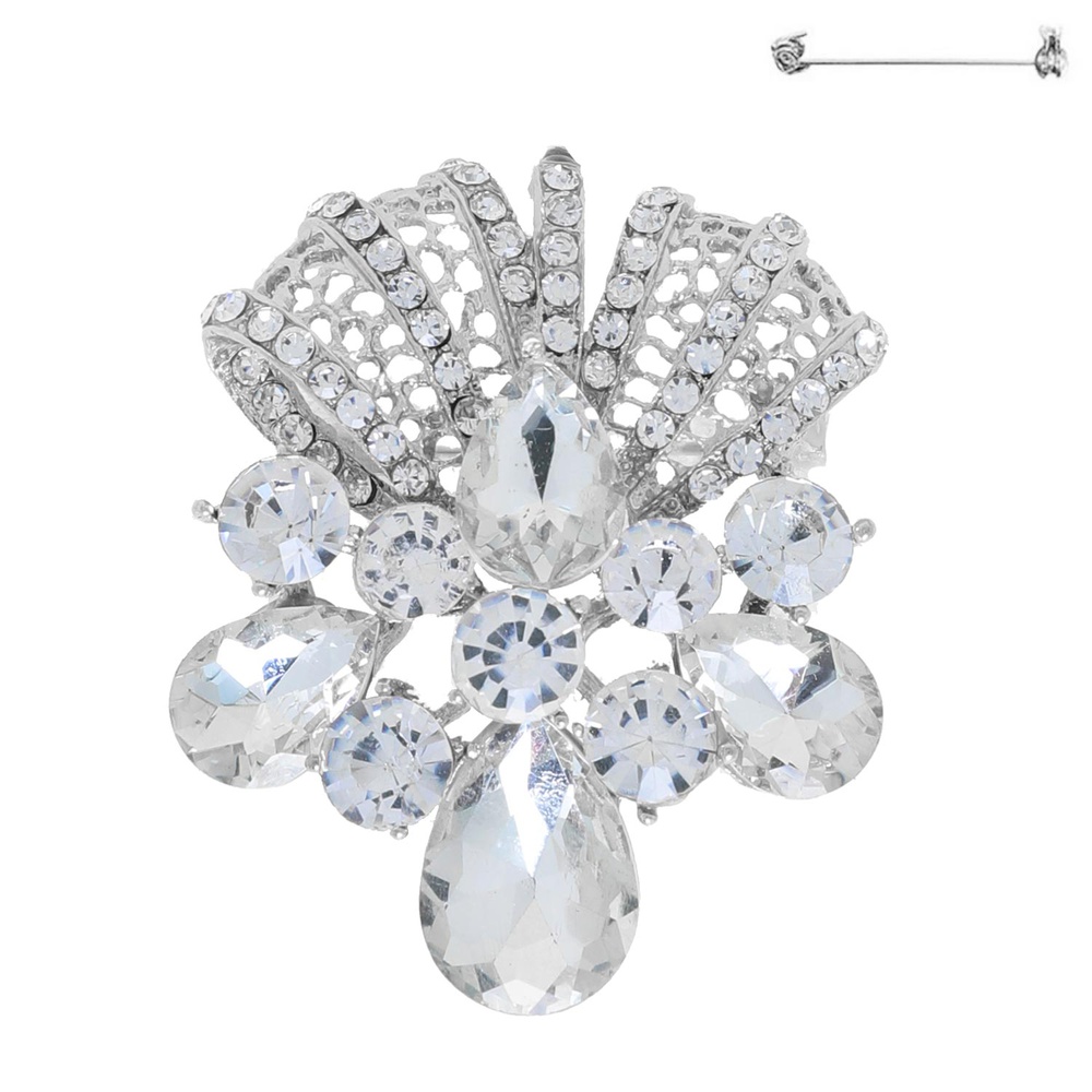 Crystal Rhinestone Bow Cluster Brooch Pin