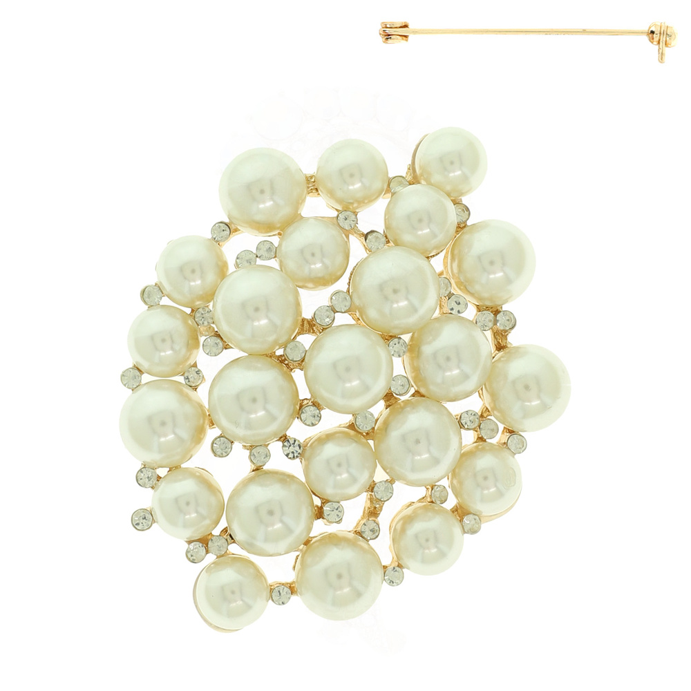 Pearl And Rhinestone Cluster Brooch Pin