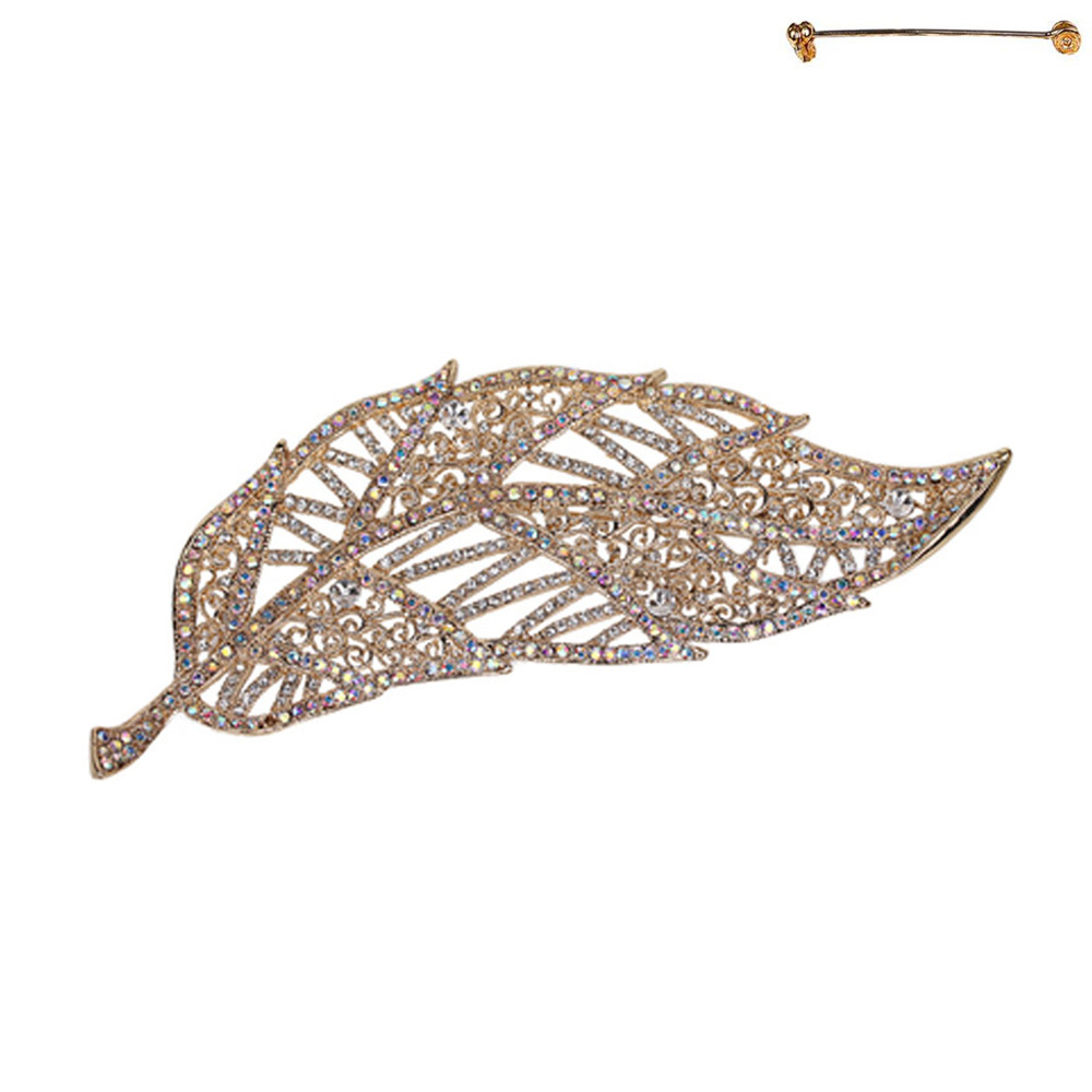 EXTRA LARGE STONE ENCRUSTED LEAF DRESSY BROOCH