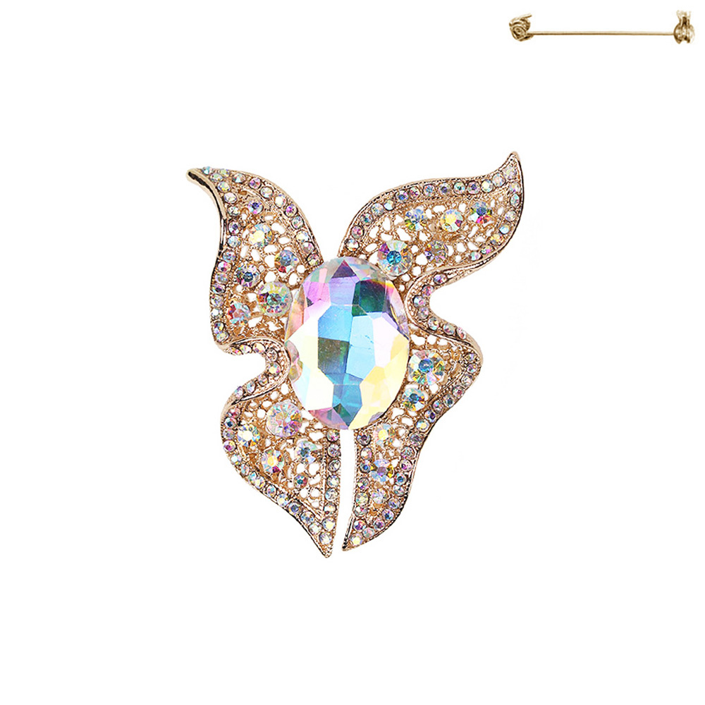 Stone Encrusted Floral Leaf with Center Oval Gem Brooch Pin