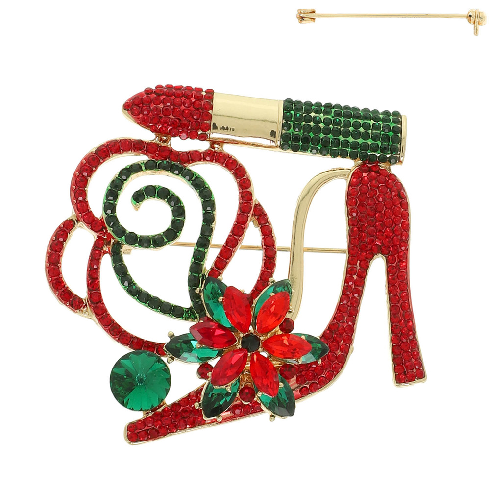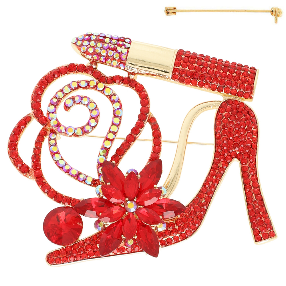 Floral Jeweled High Heel Lipstick Brooch Pin