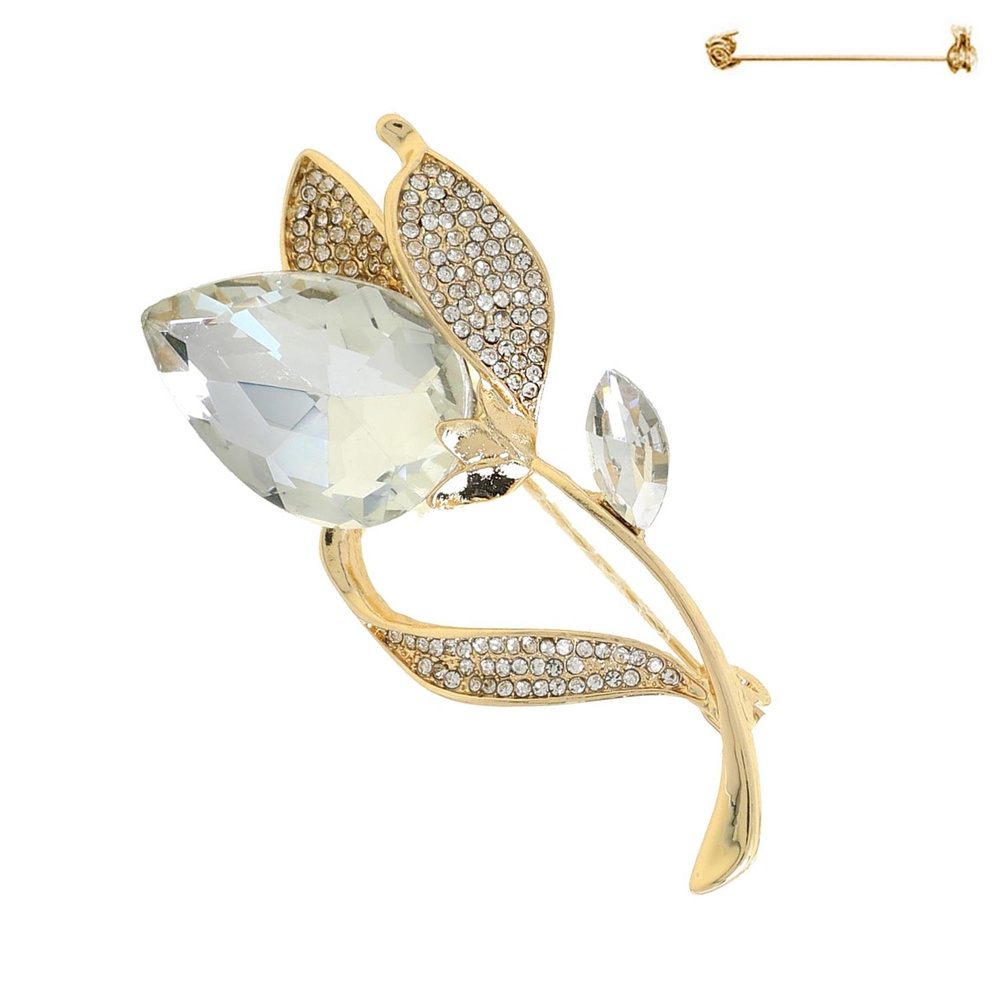 Crystal Rhinestone Tulip Floral Brooch Pin