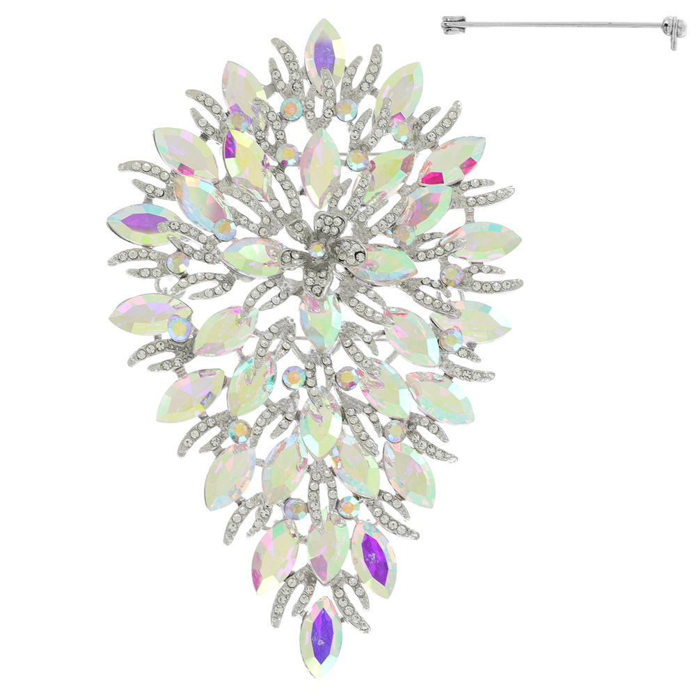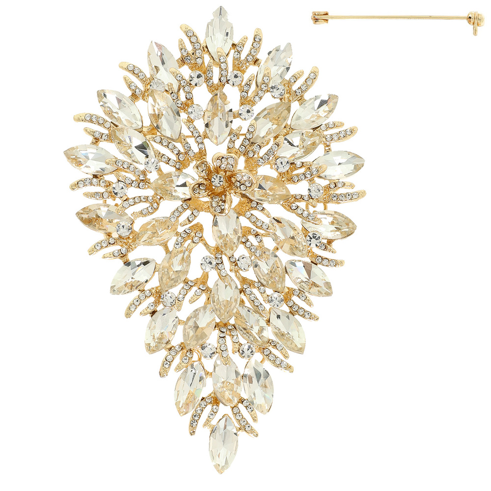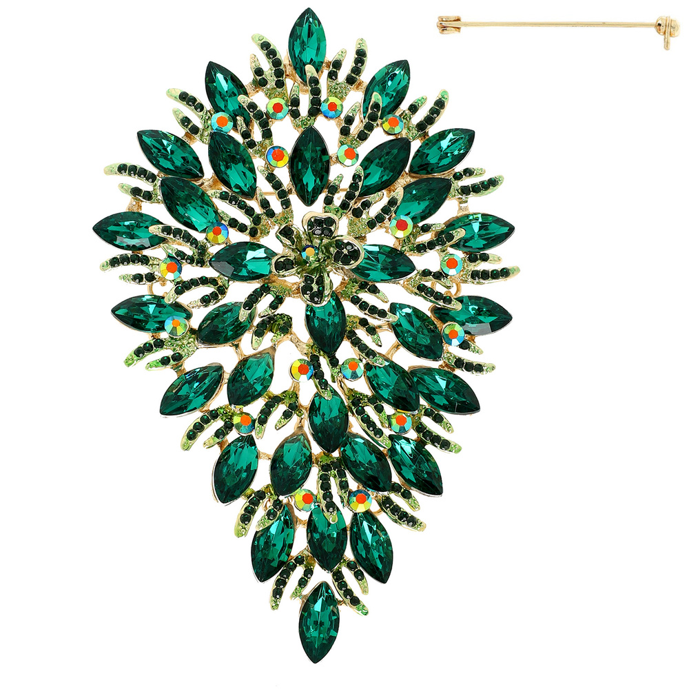 PEAR SHAPED CRYSTAL CLUSTER LEAF BROOCH PIN