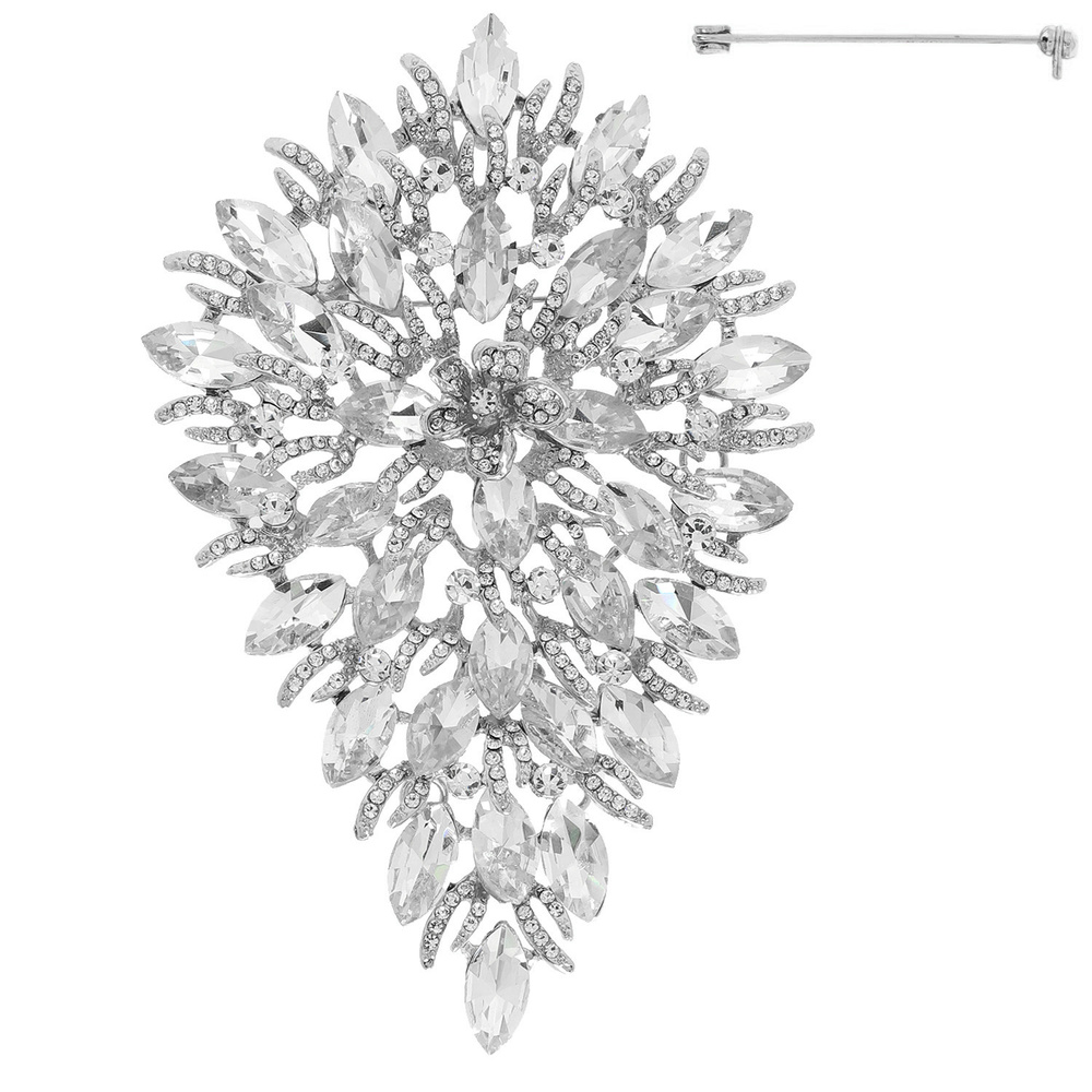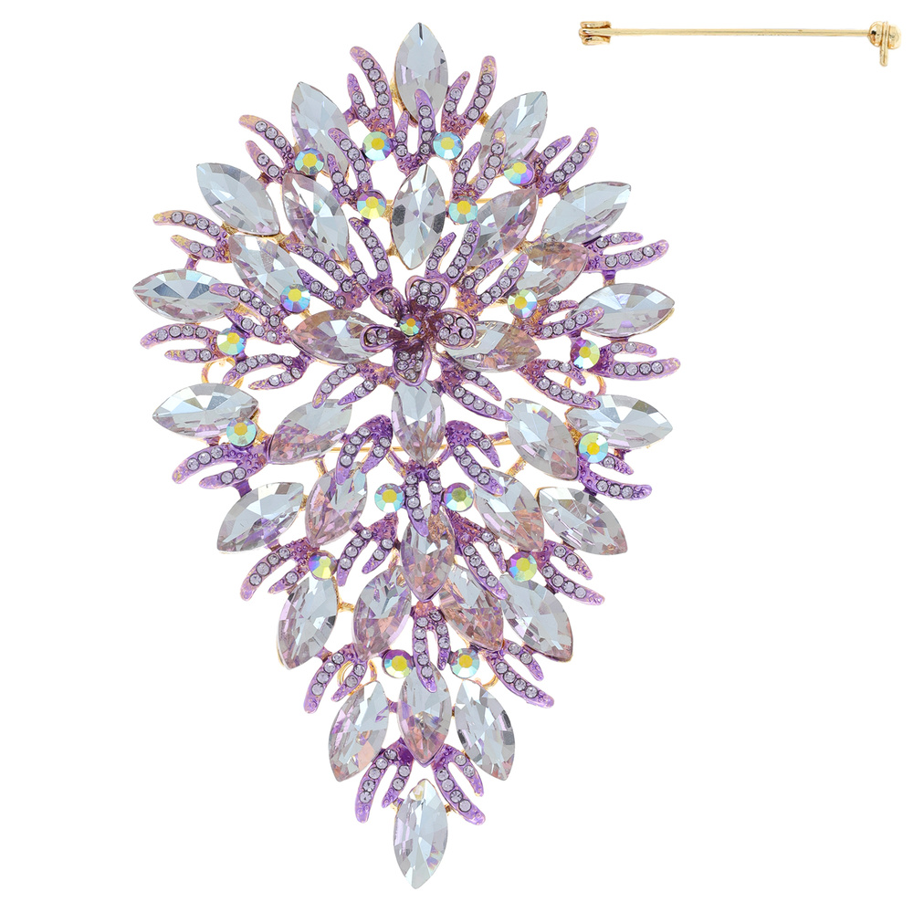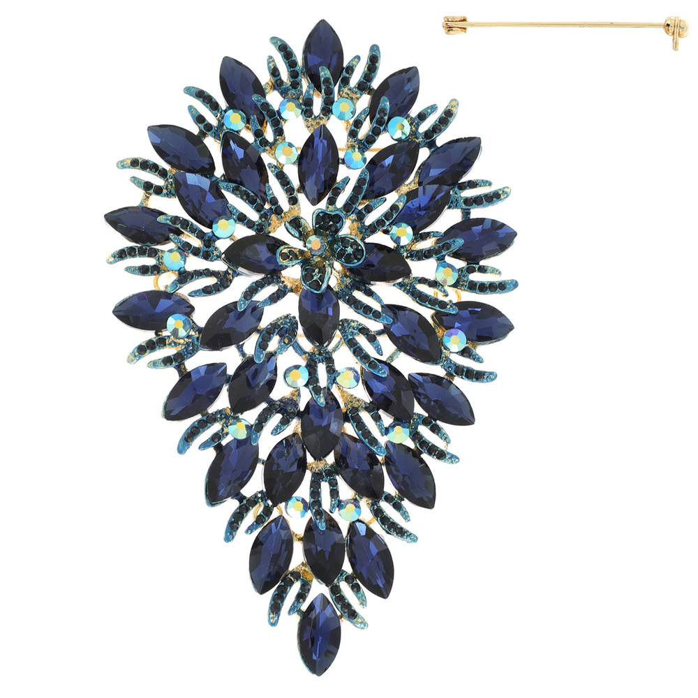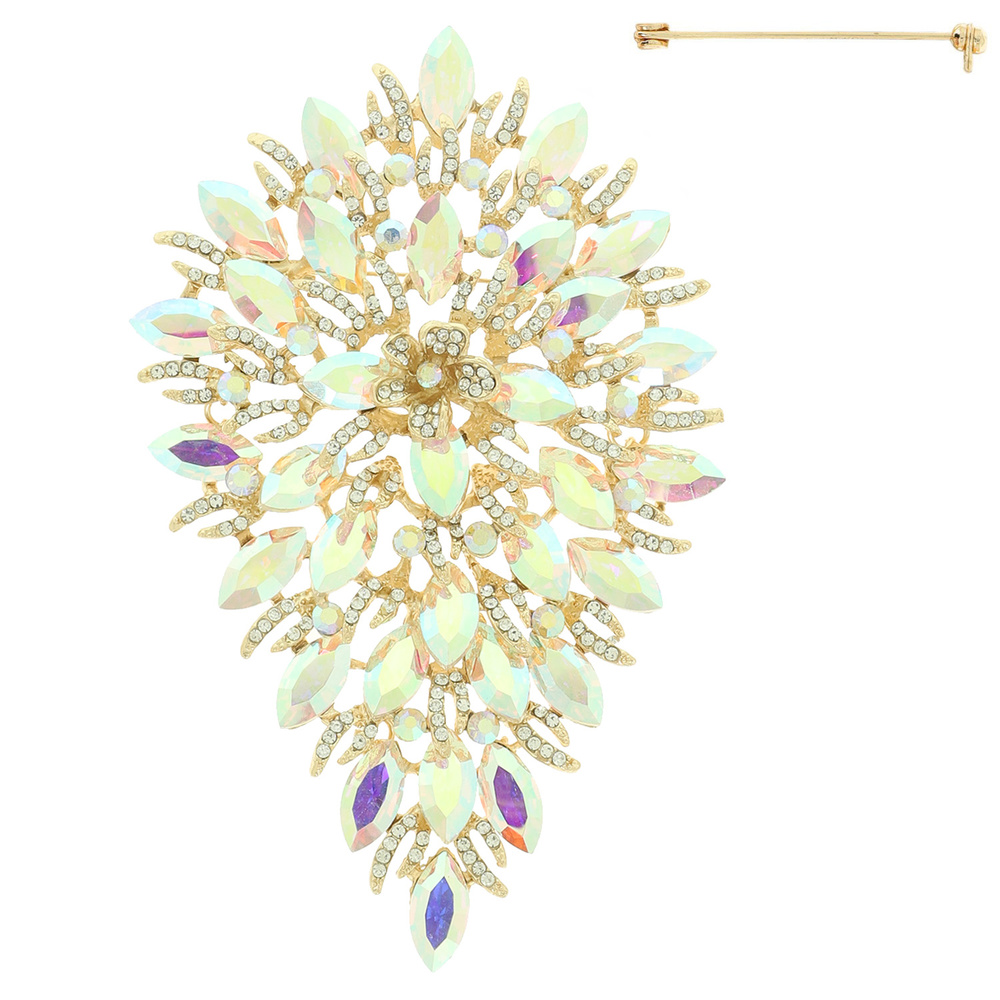 PEAR SHAPED CRYSTAL CLUSTER LEAF BROOCH PIN