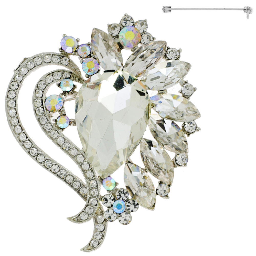 JEWELED CRYSTAL CLUSTER HEART SHAPED BROOCH PIN