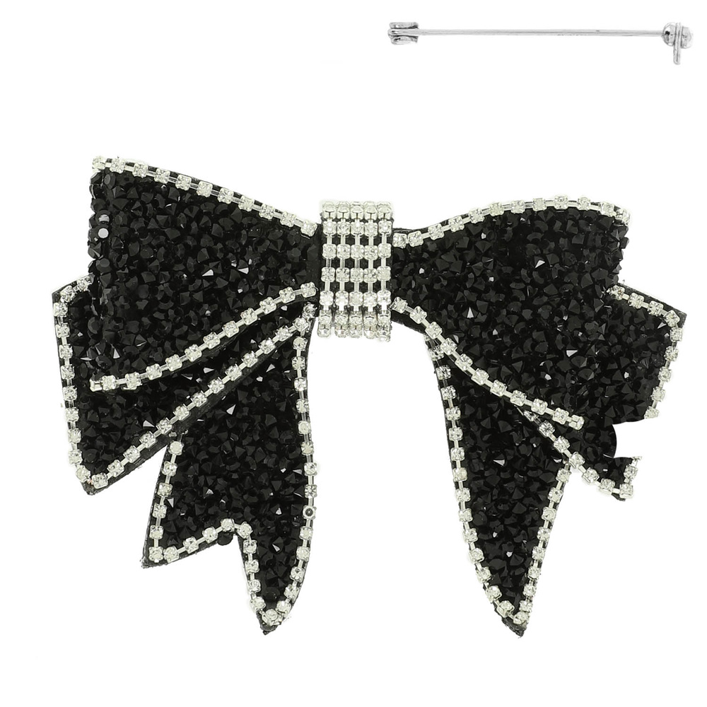 RHINESTONE PAVE SHORT TAIL BOW BROOCH PIN