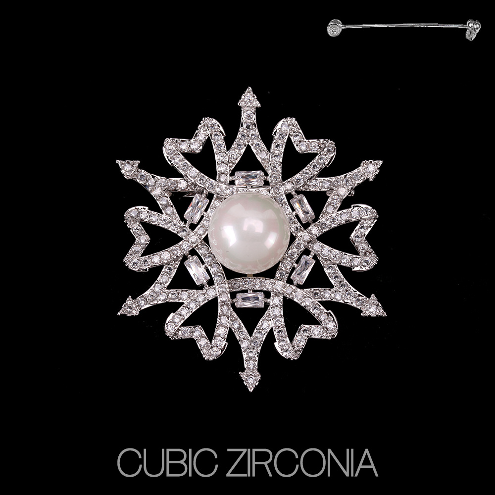 CUBIC ZIRCONIA BROOCH W/ PEARL