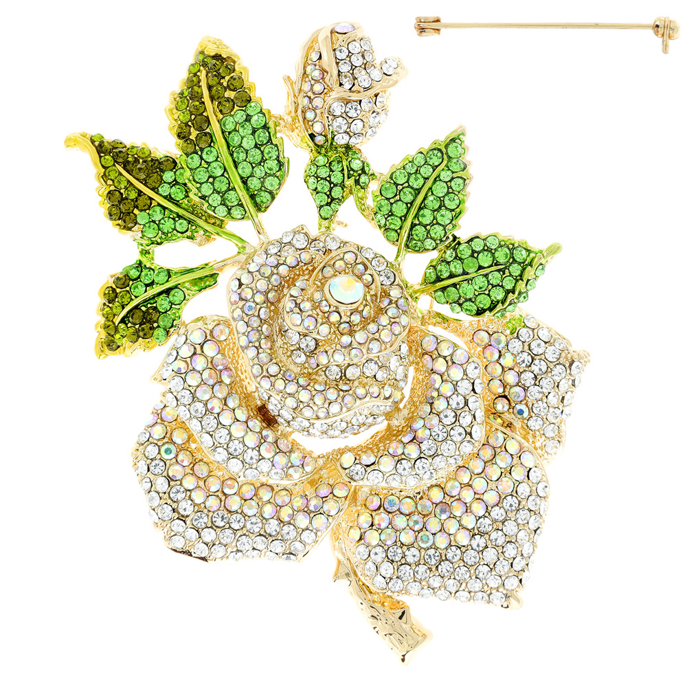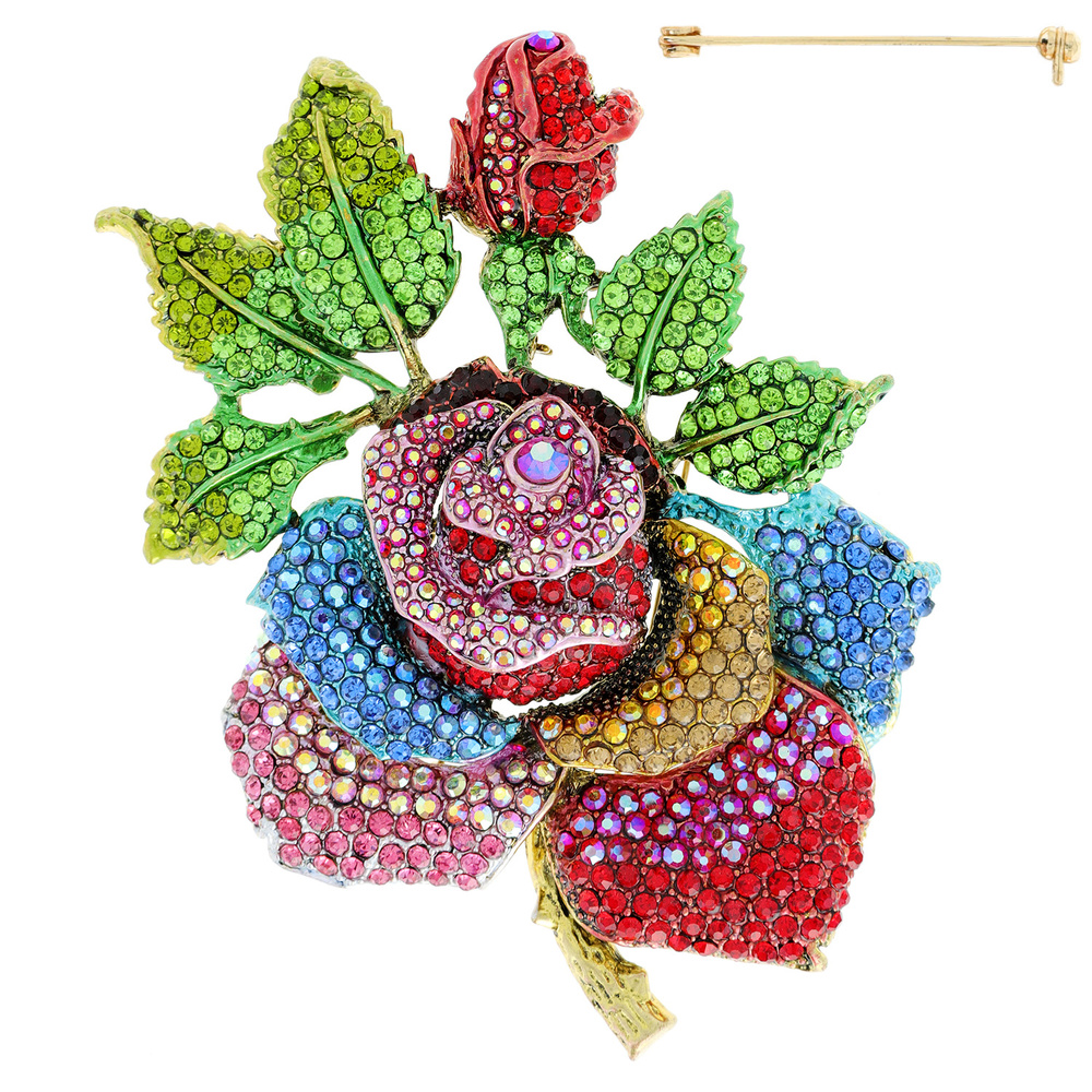 Large Multi Rose Metal Stone Brooch