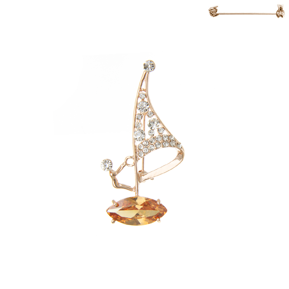 Orange Crystal Rhinestone Sailboat Brooch