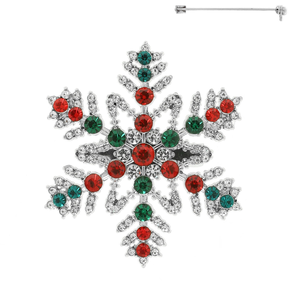 CHRISTMAS SNOWFLAKE BROOCH PIN WITH MULTI COLOR CRYSTAL ACCENTS
