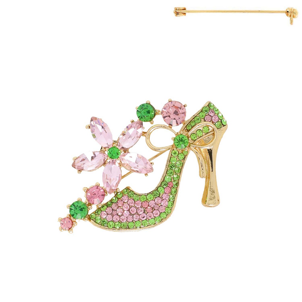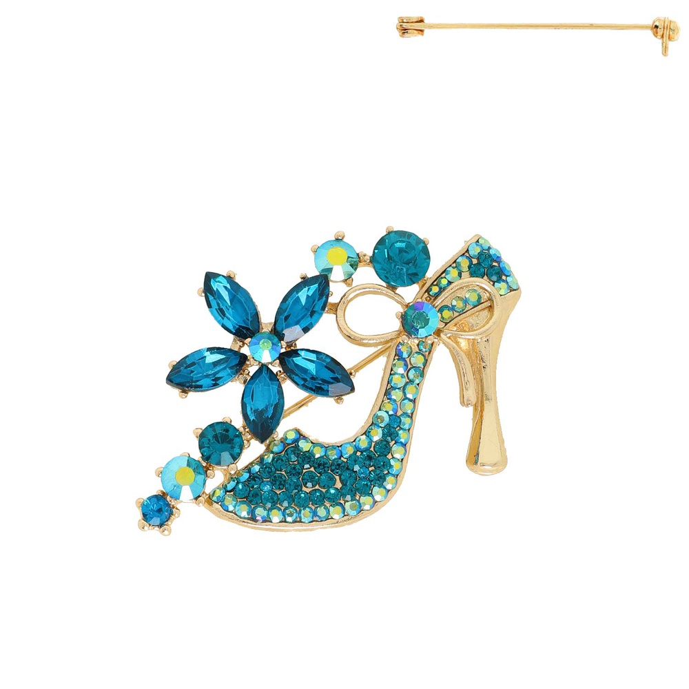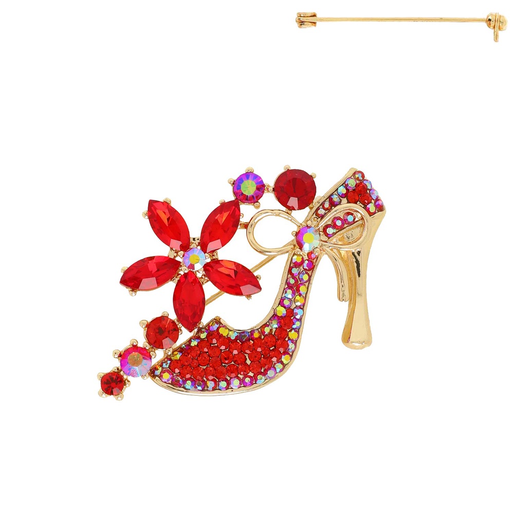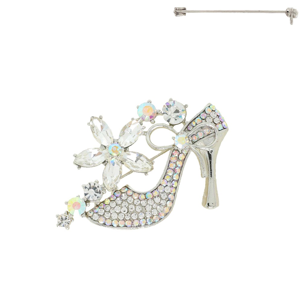 Floral Crystal High Heel Brooch Pin