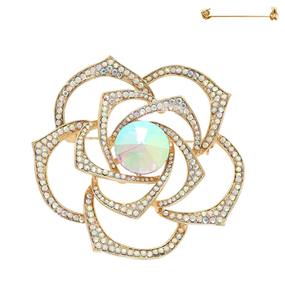 VINTAGE CRYSTAL RHINESTONE AND PEARL ROSE OUTLINE BROOCH PIN