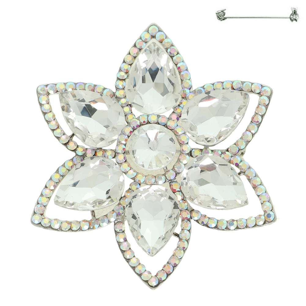 VINTAGE FLORAL CRYSTAL GEMSTONE DECORATIVE BROOCH PIN