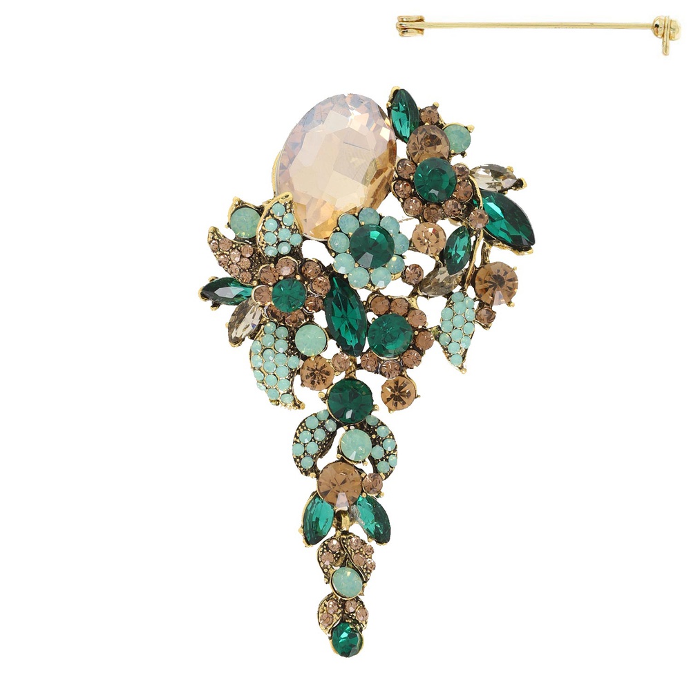 Vintage Crystal Gemstone Floral Bouquet Brooch Pin