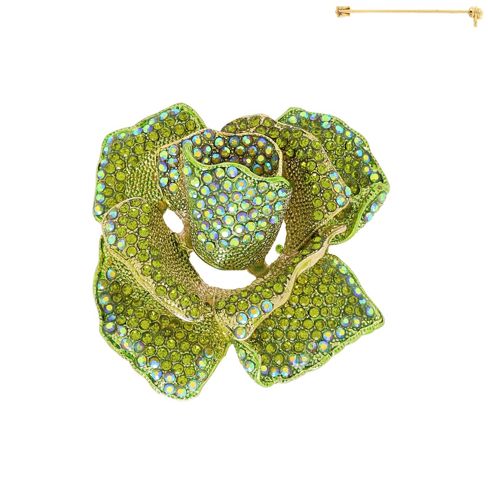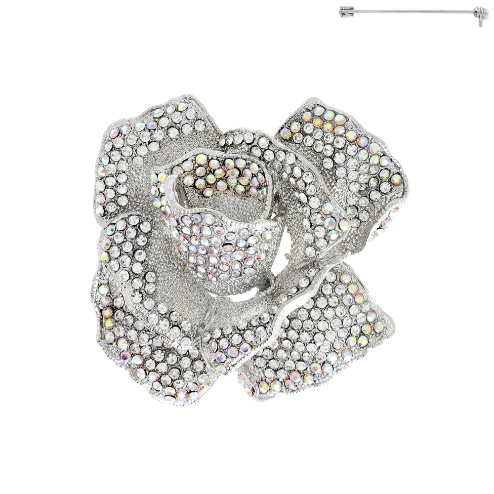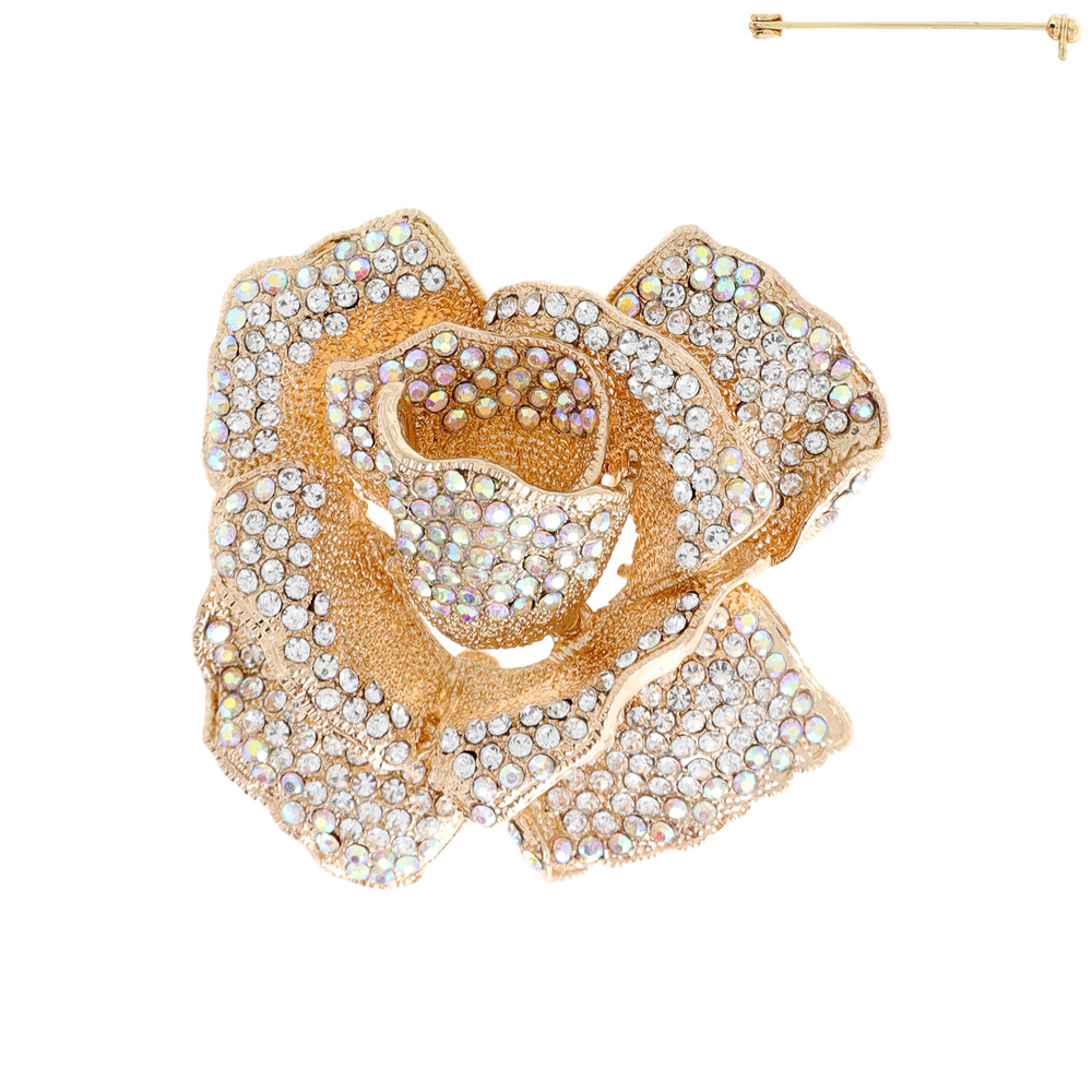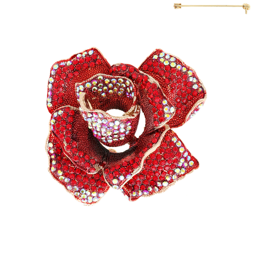 Stone Encrusted Rose Flower Brooch Pin