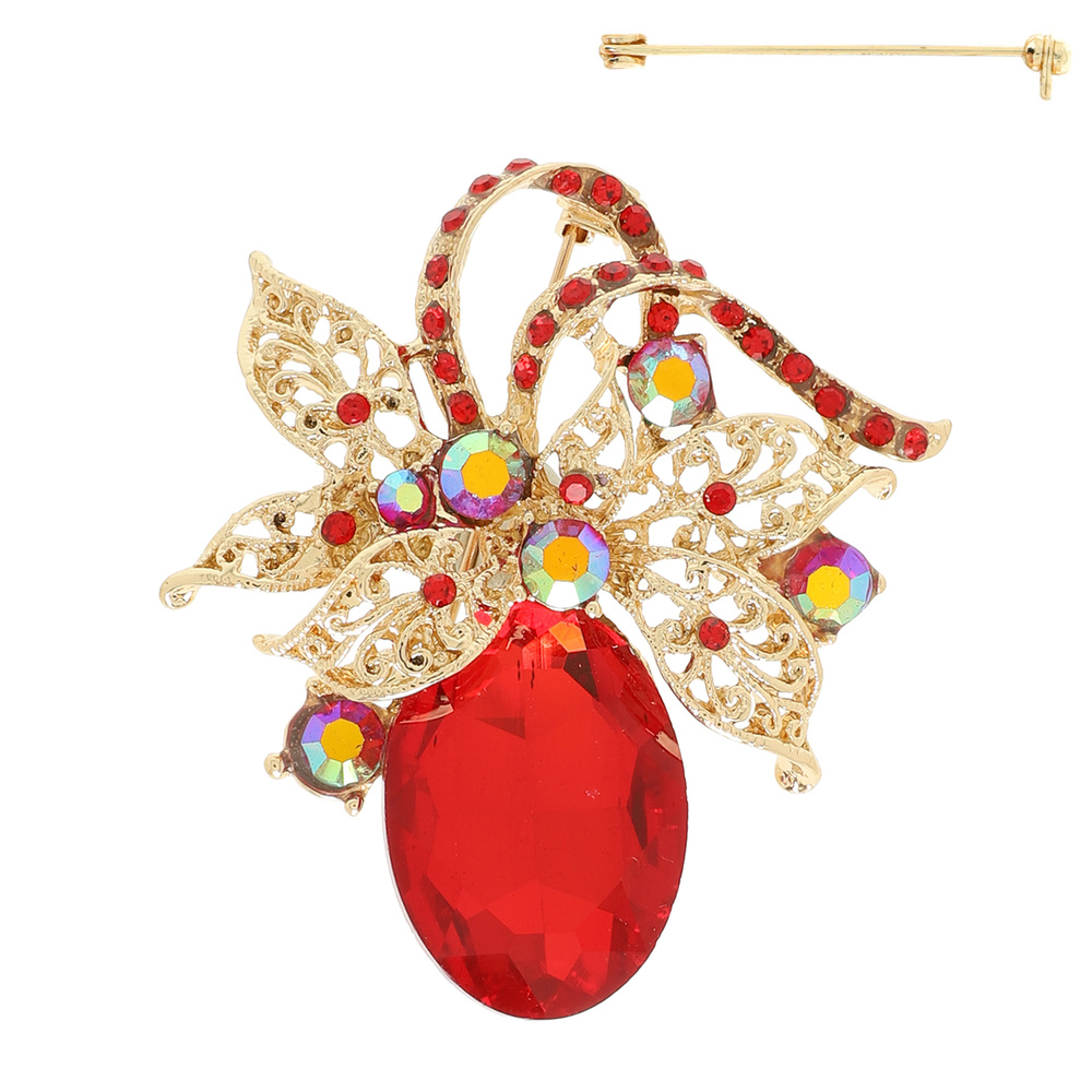 Jeweled Filigree Leaf Cluster Brooch Pin
