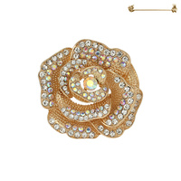 MULTI-CUT CRYSTAL RHINESTONE BEZELED FLOWER BROOCH PIN