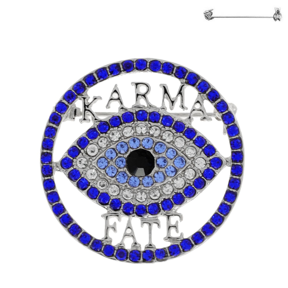 35MM KARMA FATE EVIL EYE CIRCULAR CRYSTAL RHINESTONE OPEN CIRCLE BROOCH PIN