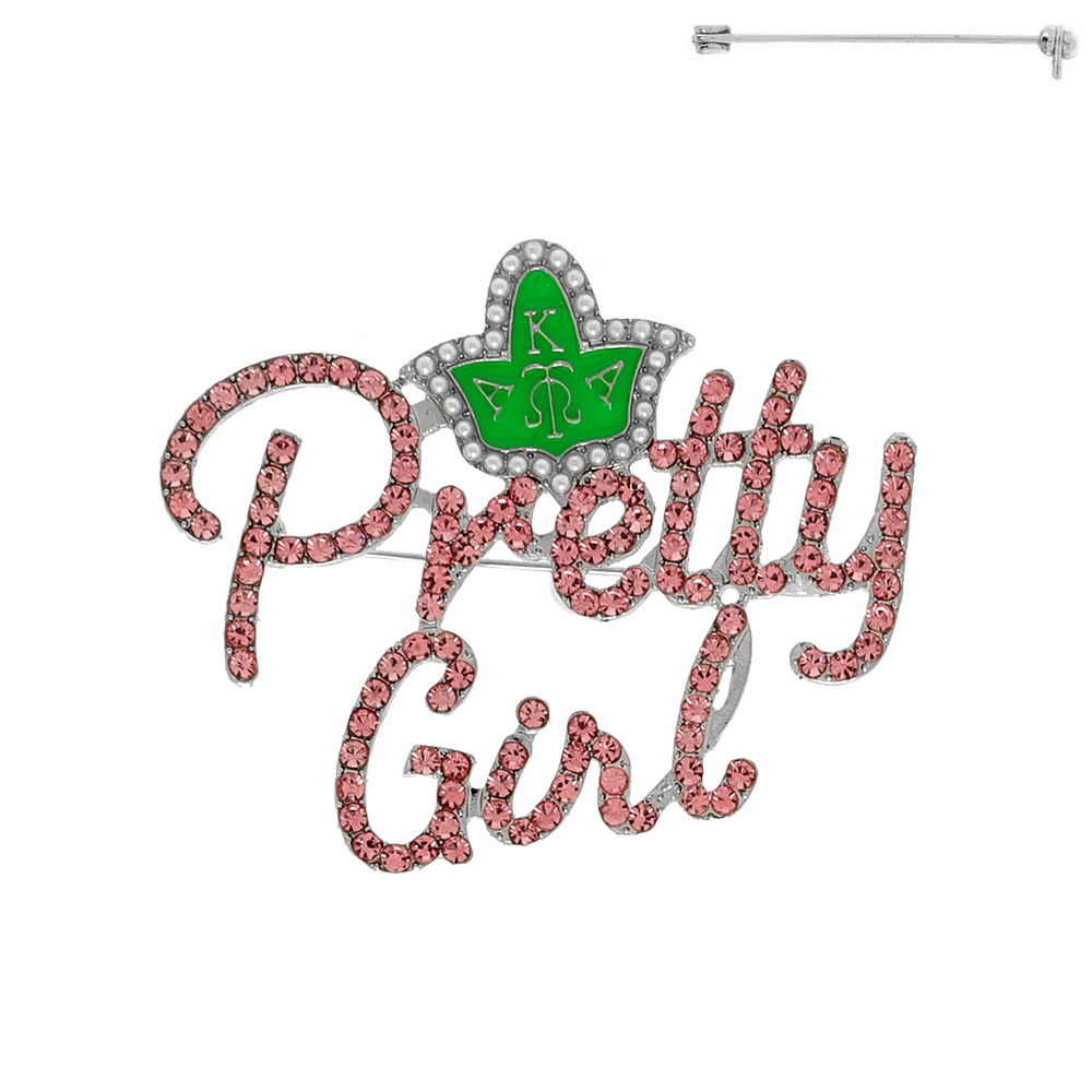 "PRETTY GIRL" AKA SORORITY IVY LEAF CRYSTAL PEARL EMBELLISHED BROOCH PIN