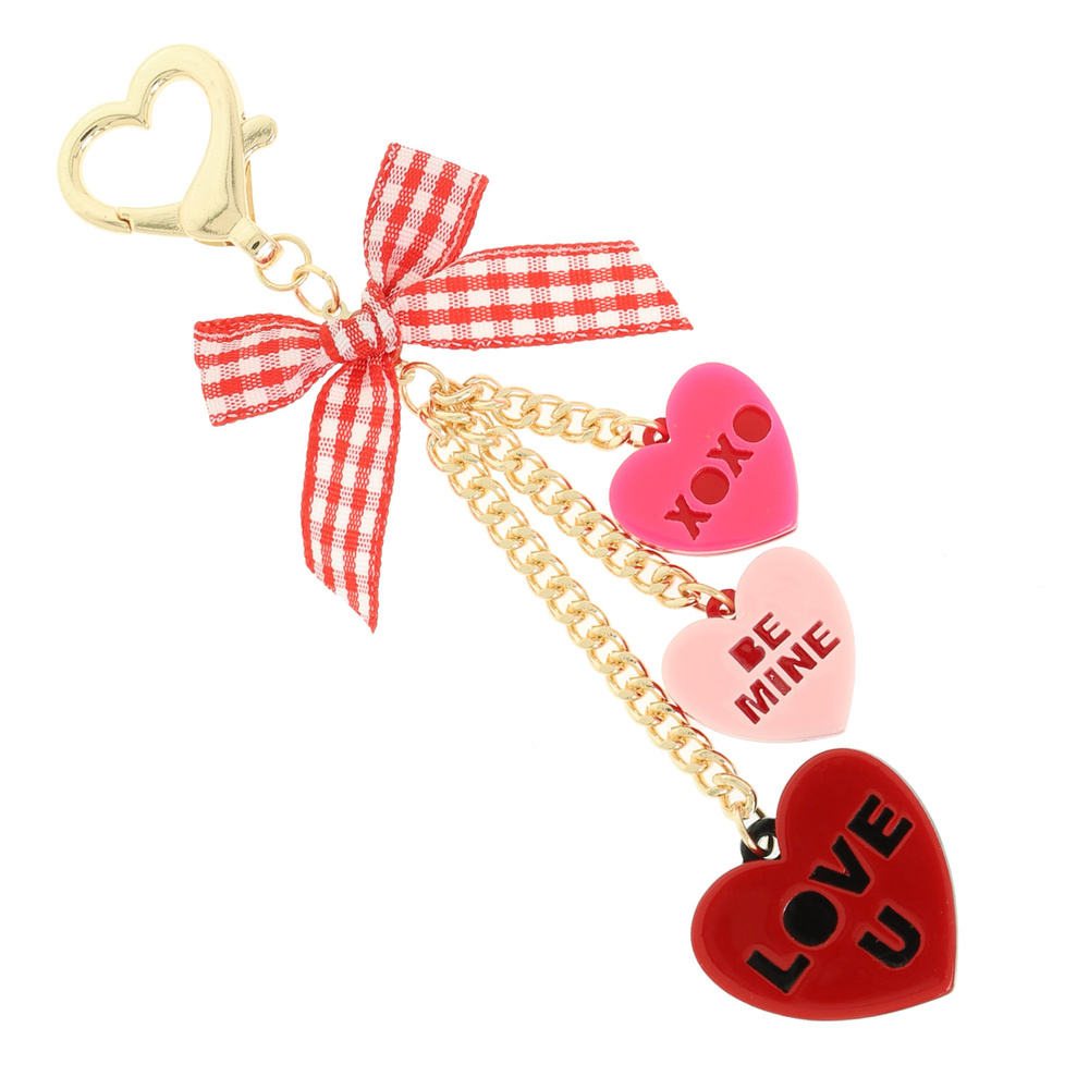 BAG CHARM KEYCHAIN WITH ENAMEL SWEETHEARTS AND GINGHAM BOW