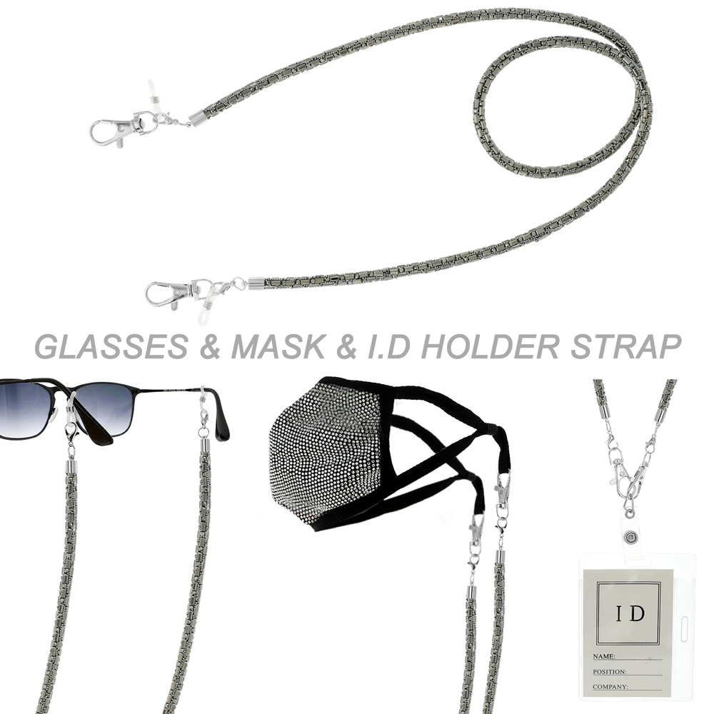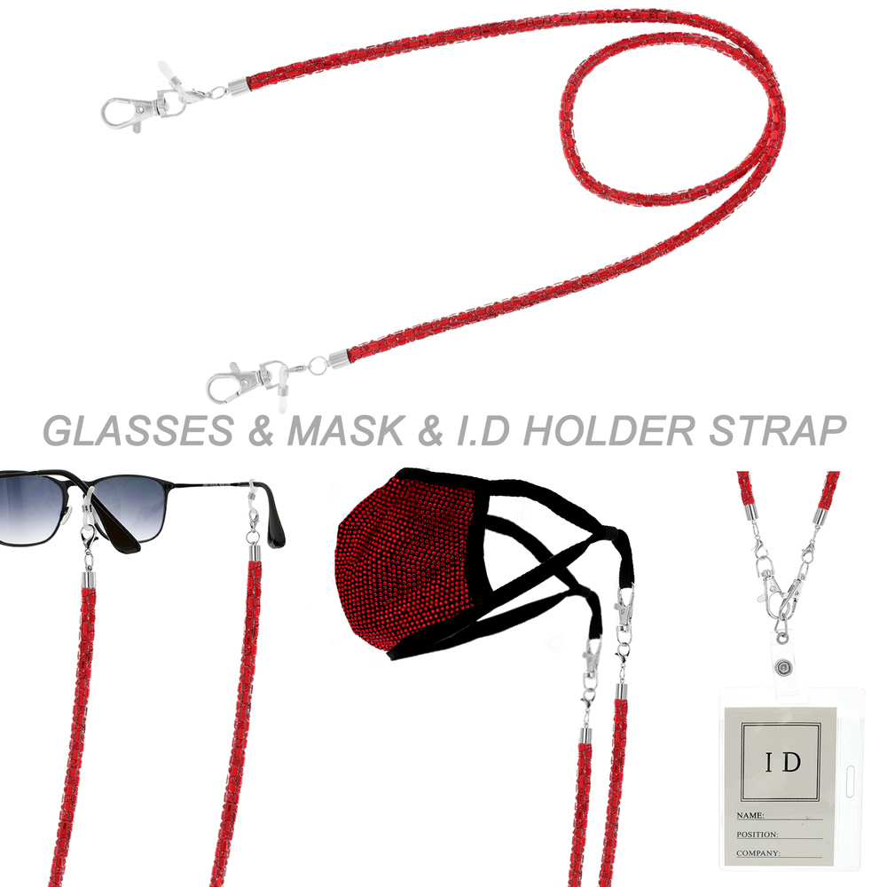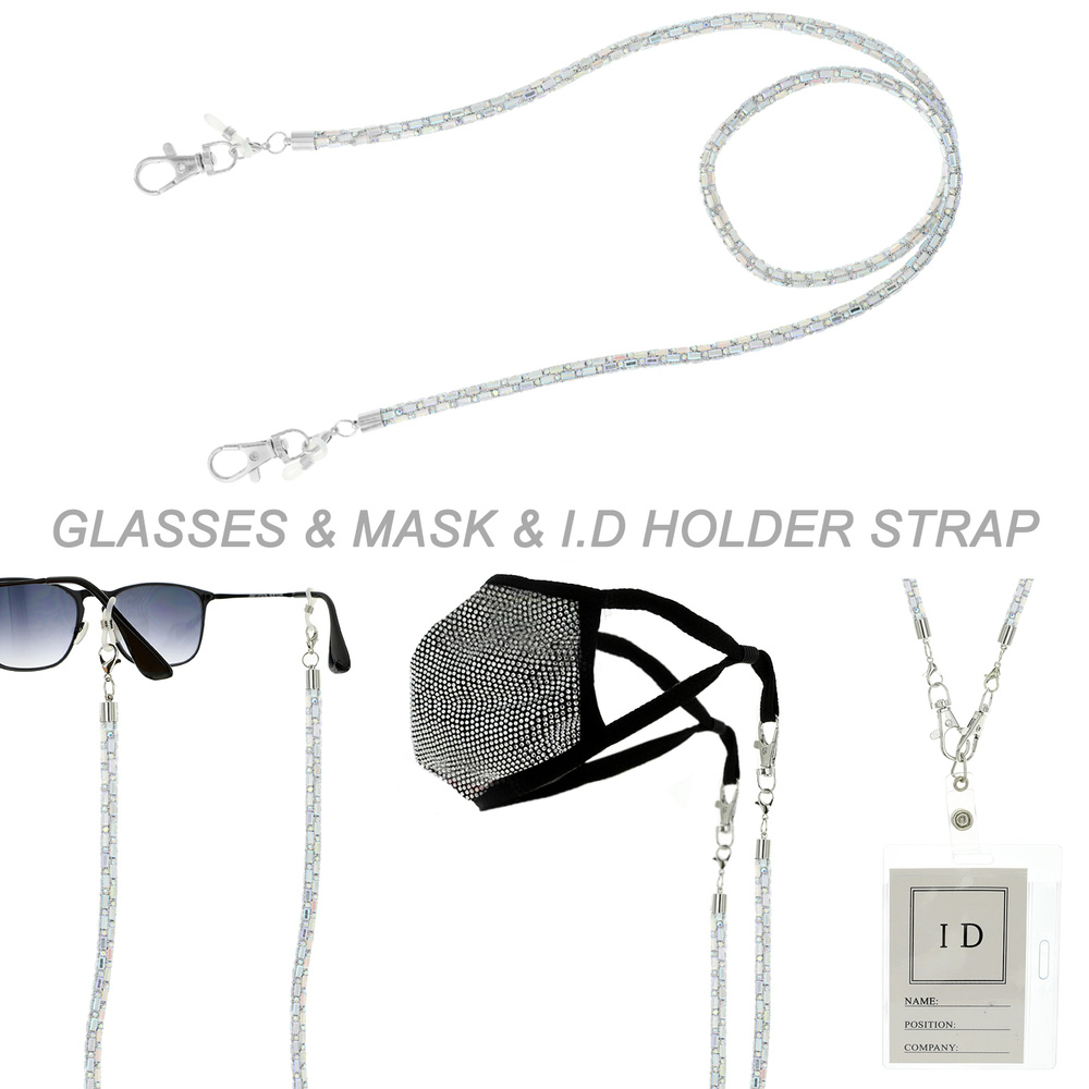 RHINESTONE GLASSES, MASK, ID HOLDER STRAP