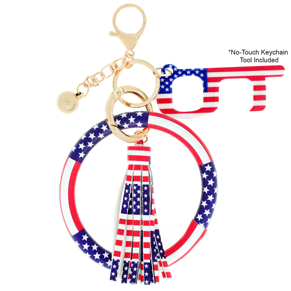 BANGLE BRACELET KEY CHAIN WITH TASSEL & NO TOUCH KEY DOOR OPENER