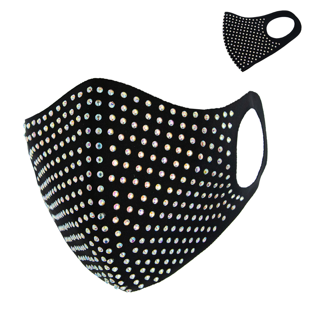 FASHION BLACK MASK W/ AB STONE & COMFORTABLE EARLOOP