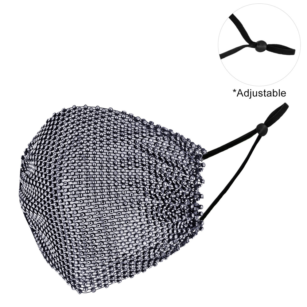 Rhinestone Mesh Mask W/ Adjustable Elastic Ear Strap