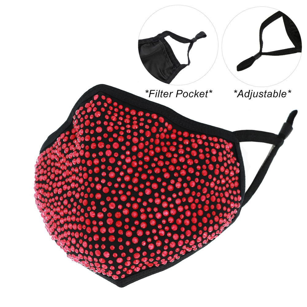 STONE BLING MASK W/ FILTER POCKET & ADJUSTABLE ELASTIC EAR STRAP