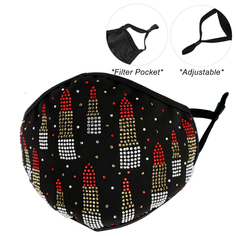 Lipstick Rhinestone Bling Mask W/ Filter Pocket & Adjustable Elastic Ear Strap