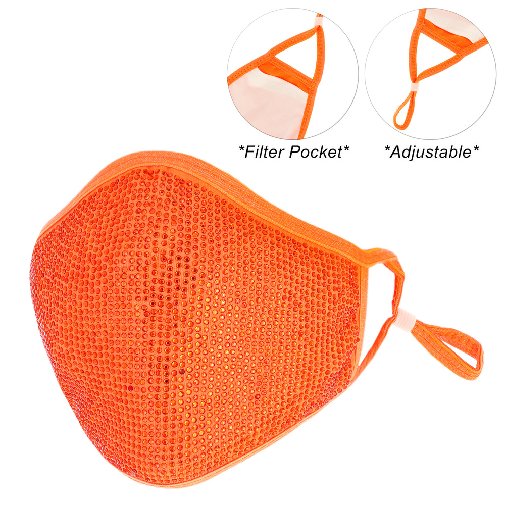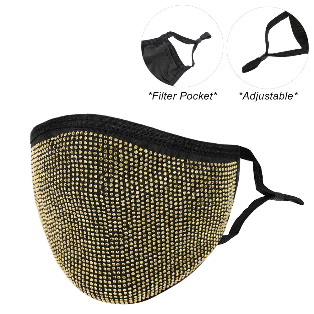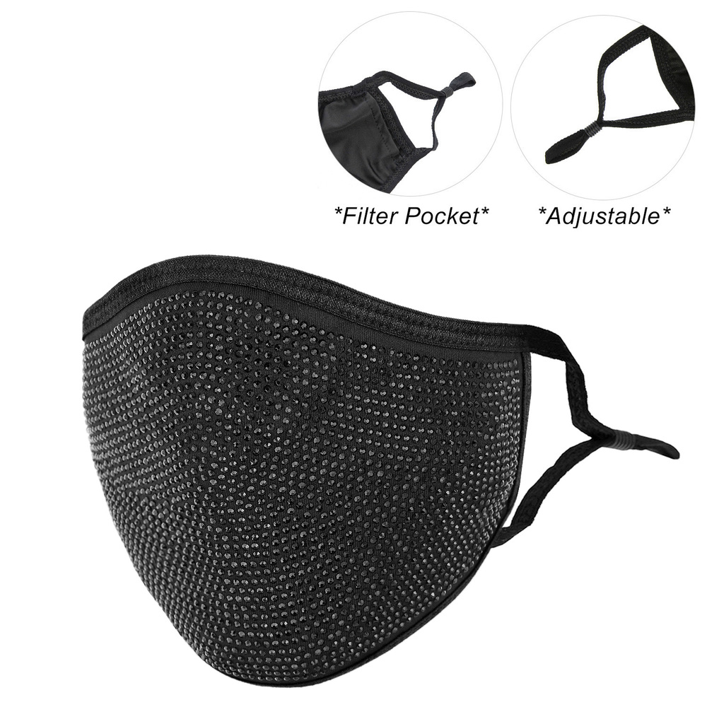 Rhinestone Bling Mask W/ Filter Pocket & Adjustable Elastic Ear Strap