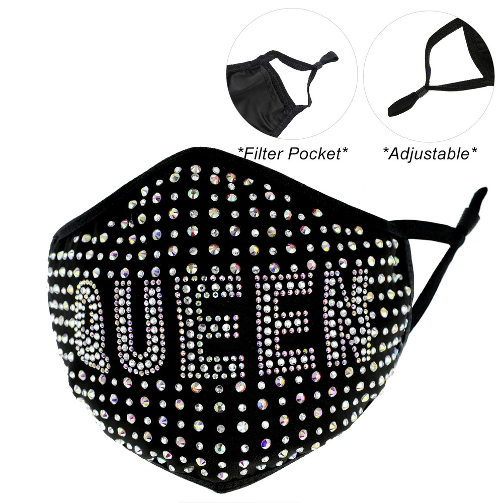 Queen Rhinestone Bling Mask W/ Filter Pocket & Adjustable Elastic Ear Strap
