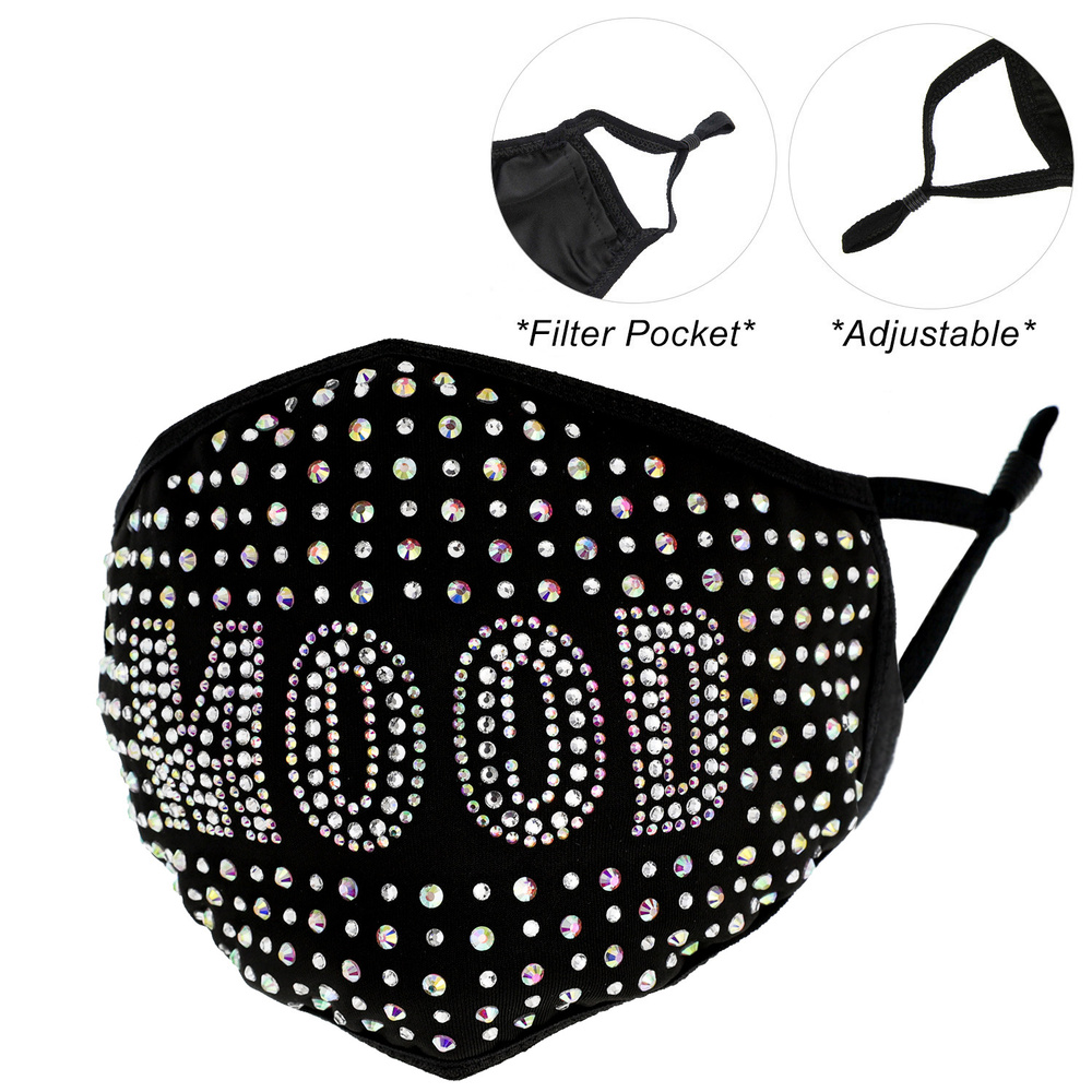 Mood Rhinestone Bling Mask W/ Filter Pocket & Adjustable Elastic Ear Strap