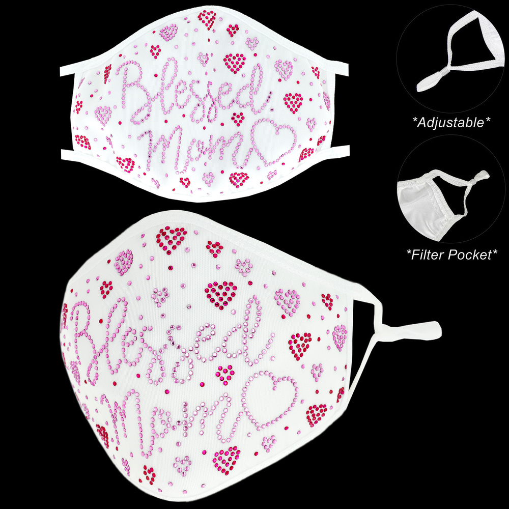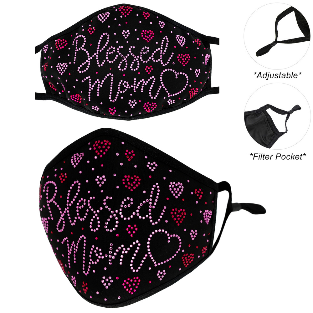 BLESSED MOM & HEARTS FACE MASK W/ FILTER POCKET & ADJUSTABLE ELASTIC EAR STRAP