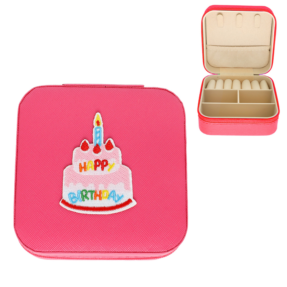 BIRTHDAY CAKE PATCH FASTENED TRAVEL JEWELRY BOX WITH MULTIPULE COMPARTMENTS