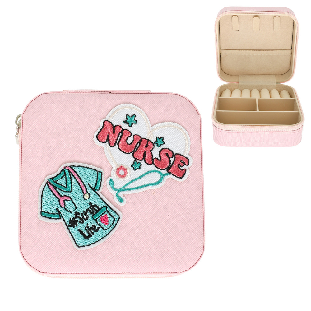 "NURSE" & "SCRUB LIFE" PATCH FASTENED TRAVEL JEWELRY BOX WITH MULTIPULE COMPARTMENTS