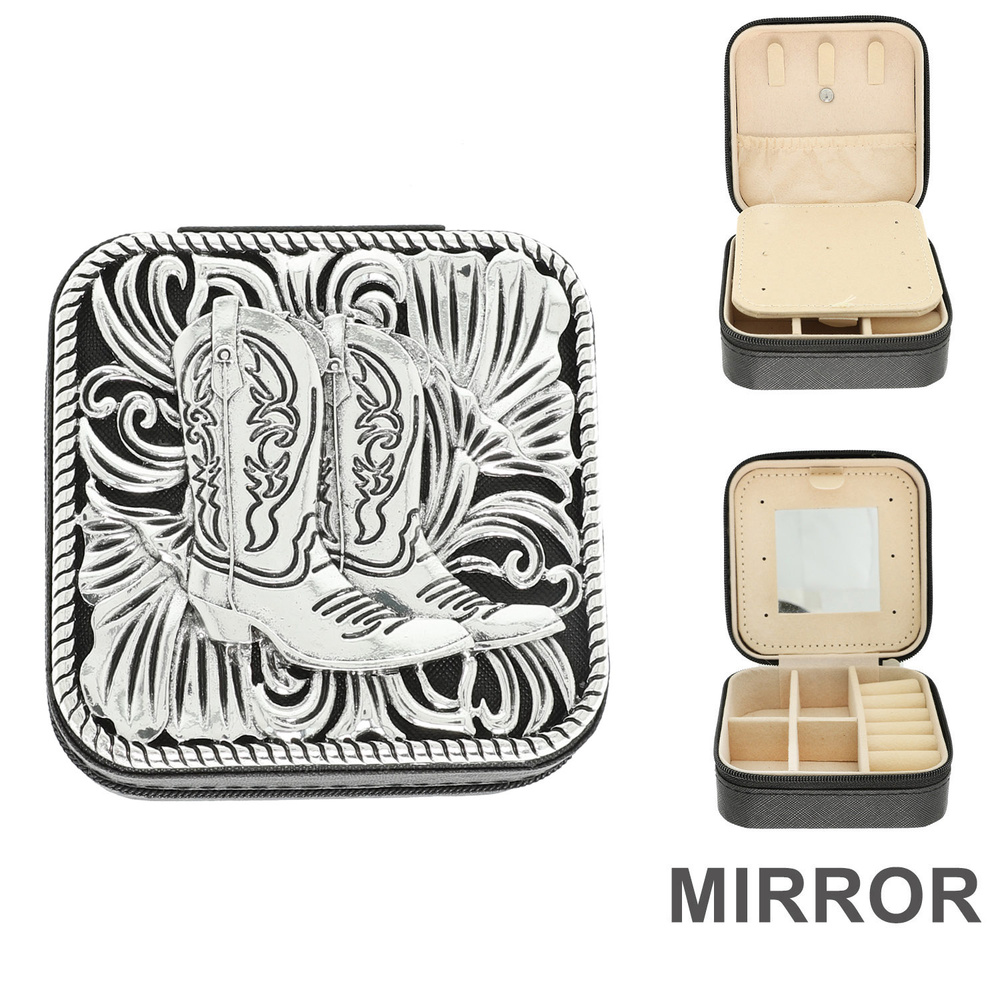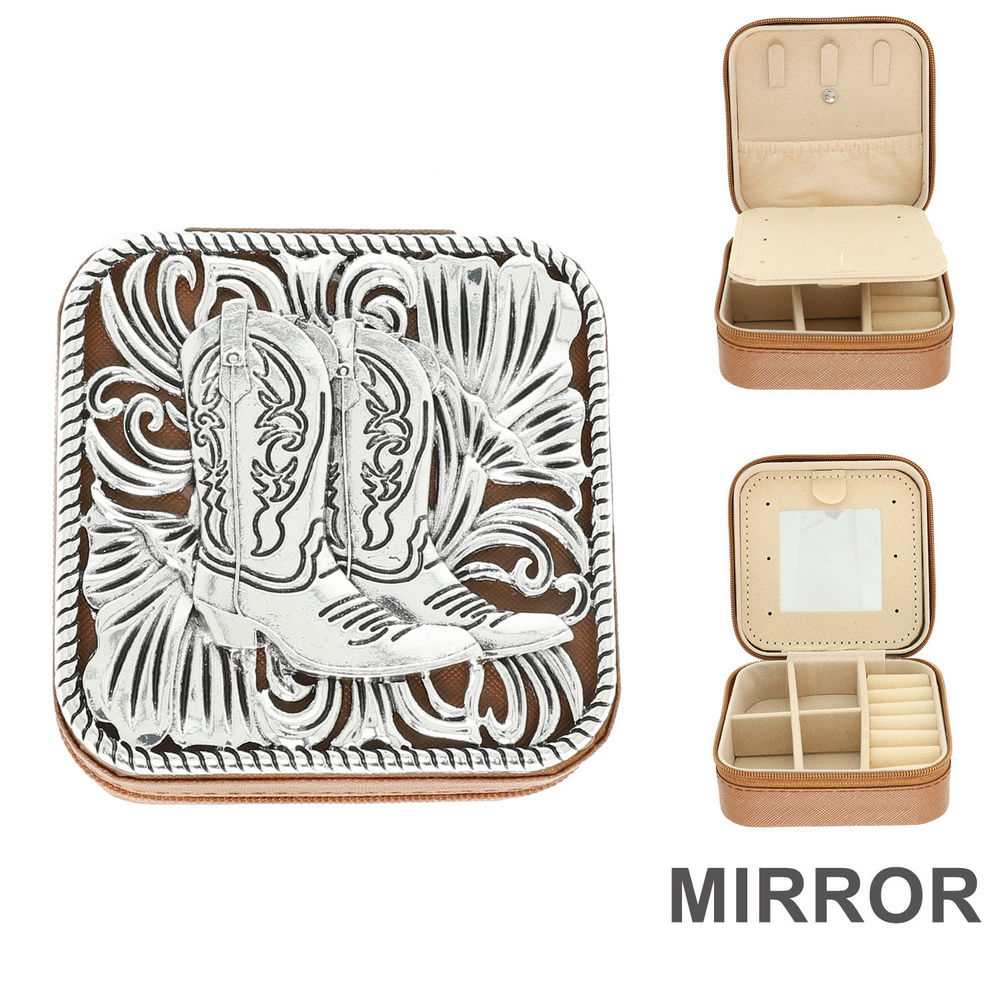 COWBOY BOOTS METAL PLATE TRAVEL JEWELRY BOX WITH MULTIPULE COMPARTMENTS
